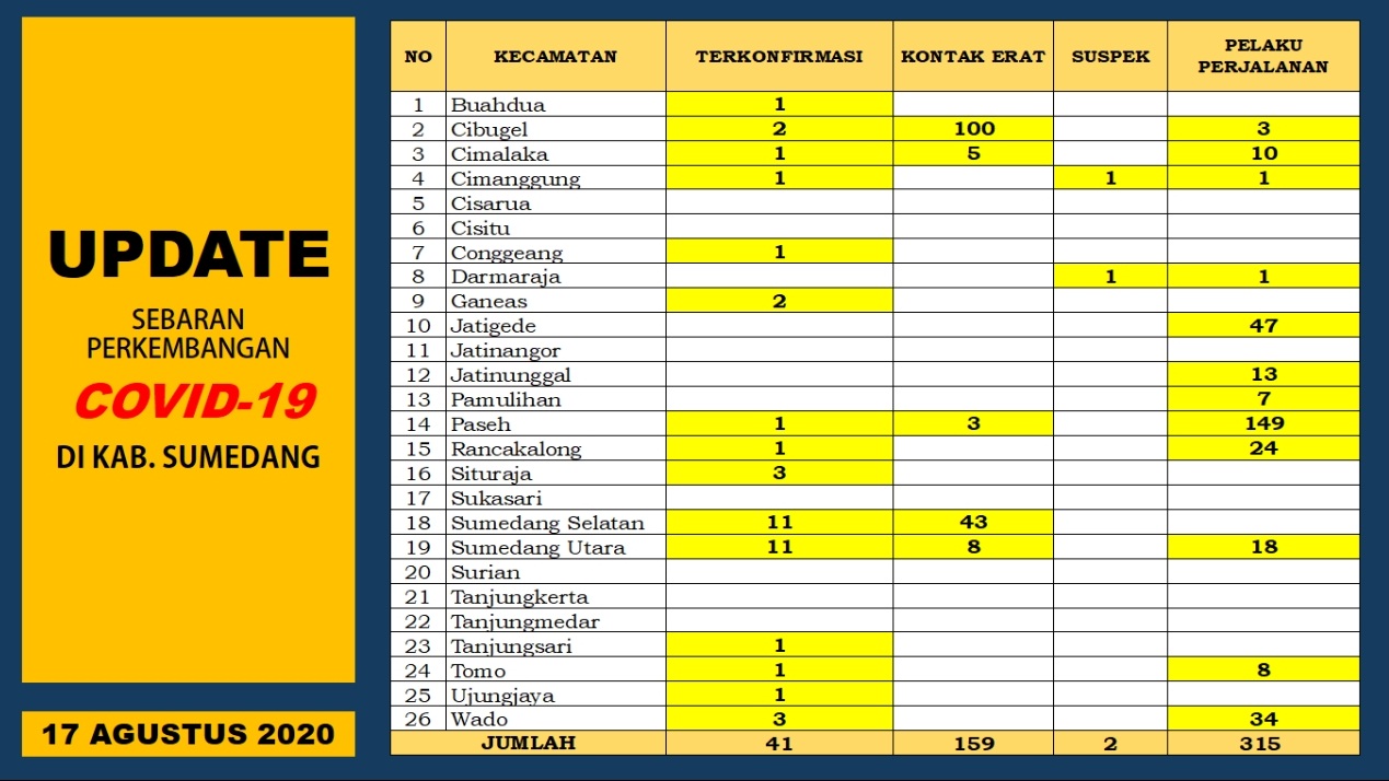 Kasus Konfirmasi Covid-19 Di Kab. Sumedang Alami Peningkatan, Pasien Dirawat/Isolasi Sebanyak 41 Orang (foto data Pemkab Sumedang-grahabignews.com