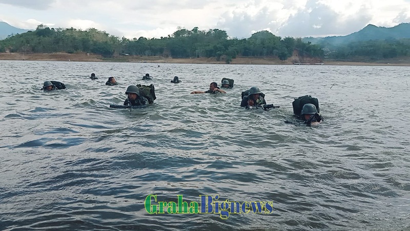 Batalyon Infanteri Raider- 301/PKS Sumedang Gelar Latihan Pemeliharaan Tahap Rawa Laut Di Waduk Jatigede (foto oleh Ghani Purnama-grahabignews.com)
