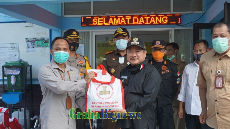 Bupati Garut Rudy Gunawan menerima 1.000 (seribu) paket sembako bantuan dari Presiden RI yang diserahkan Staf Sekretaris Pribadi Presiden, Ismail, di Kantor Kecamatan Cibalong, Rabu (21/10/2020). (Foto : Deni Septyan/Diskominfo Garut-grahabignews.com)