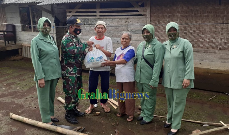 Koramil 1006/Rancakalong Sumedang Bersama Anggota Persit Ranting 6, Gelar Baksos Bagikan Sembako Kepada Warga Kurang Mampu Terkena Dampak Covid-19 (foto oleh Ghani PR-grahabgnews.com)