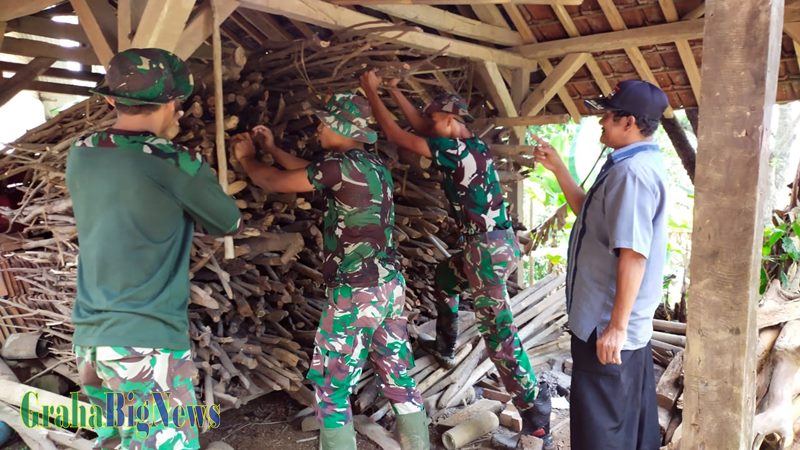 Tanpa Perintah, Anggota TNI Pikul Kayu Bakar
