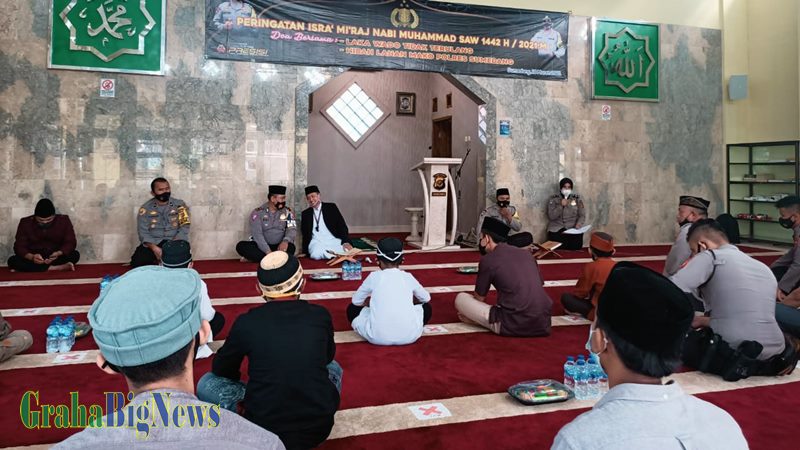 Polres Sumedang Peringati Isro Mi’raj di Mesjid Al-Hidayah Polres Sumedang, Kamis (18/03/2021). (Foto: Ghani Purnama – grahabignews.com)