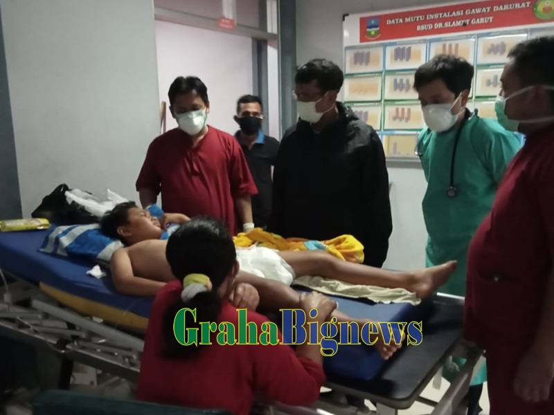 Wabup Garut, dr. Helmi Budiman menjenguk para korban kecelakaaan yang terjadi di Desa Sindanggalih, Kecamatan Karangpawitan, Kabupaten Garut, Jum'at (2/4/2021). (Foto : Yogi Budiman/Diskominfo Garut-grahabignews.com)