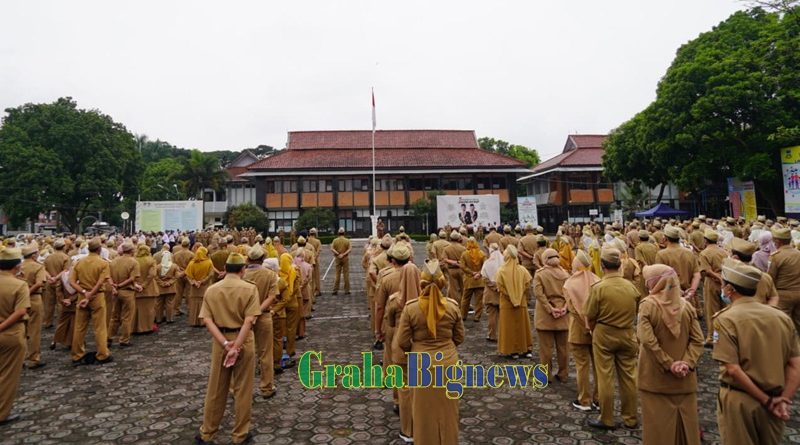 Garut – Bupati Garut, Rudy Gunawan mengingatkan kepada para ASN (Aparatur Sipil Negara) di Kabupaten Garut untuk terhindar dari radikalisme. Hal ini disampaikan Bupati pada kegiatan apel gabungan terbatas di Lapangan Sekretariat Daerah, Kecamatan Tarogong Kidul, Kabupaten Garut, Senin (5/4/2021).