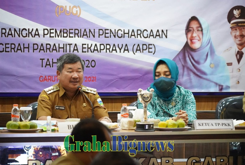 Garut – Pemerintah Kabupaten Garut melaksanakan Verifikasi Lapangan Pelaksanaan Pengarusutamaan Gender (PUG) Dalam Rangka Pemberian Penghargaan Anugerah Parahita Ekapraya (APE) Tahun 2020 yang diselenggarakan di Aula Badan Perencanaan Pembangunan Daerah (BAPPEDA), Kecamatan Tarogong Kidul, Kabupaten Garut, Senin (5/4/2021). Acara ini dihadiri oleh para SKPD (Satuan Kerja Perangkat Daerah) di Kabupaten Garut.