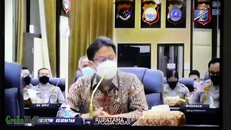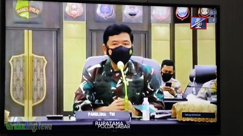 Sumedang – Dalam rangka persiapan pengamanan Idul Fitri 1442 H di masa Pandemi Covid-19 Tahun 2021, Bupati Sumedang H. Dony Ahmad Munir mengikuti Rakor Lintas Sektoral yang diikuti oleh Kementerian dan Pemerintah Daerah di seluruh Indonesia secara virtual dari Aula Vicon Polres Sumedang, Rabu (21/4).