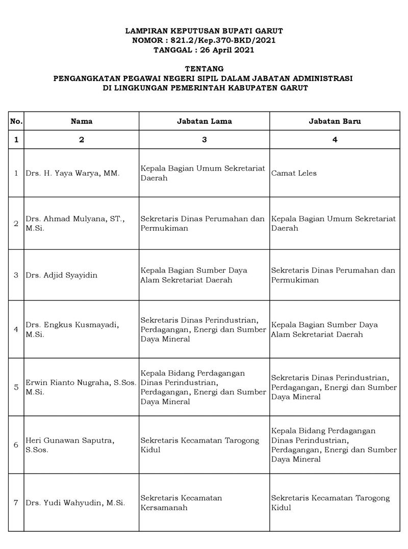 Bupati Garut mengucapkan selamat atas dilantiknya para pejabat di lingkungan Pemerintah Kabupaten Garut. Ia menuturkan bahwa ini adalah hasil dari penilaian tim kinerja dan usulan dari kepala SKPD (Satuan Kerja Perangkat Daerah).