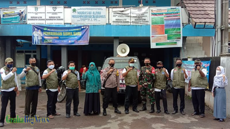 Sumedang – Jajaran Polres Sumedang laksanakan silaturahmi Kamtibmas sekaligus monitoring PPKM ke Ponpes se- Kecamatan Darmaraja, dan memberikan masker dalam penanganan Covid-19 pada masa AKB, yakni di wilayah Kecamatan Darmaraja, Senin (28/06/2021).