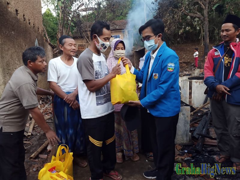 Sekretaris KNPI Kec.Bayongbong, Hilman Gumilar menyerahkan bantuan kepada korban