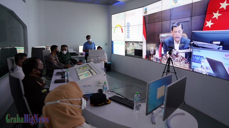 Garut – Bupati Garut, Rudy Gunawan mengikuti Rapat Evaluasi Pemberlakuan Pembatasan Kegiatan Masyarakat (PPKM) Darurat di Banten, Jawa Barat dan DKI Jakarta secara virtual melalui aplikasi zoom meeting di Gedung Command Center, Komplek Pemda Garut, Senin (21/7/2021).