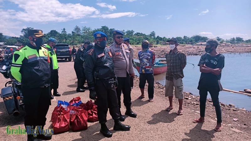 Menurut keterangan Kasubag Humas Polres Sumedang AKP Dedi Juhana, dalam kesempatan tersebut Kapolres didampingi pejabat utama Polres Sumedang secara simbolis memberikan dua puluh paket sembako kepada pedagang, tukang parkir dan nelayan sekitar.