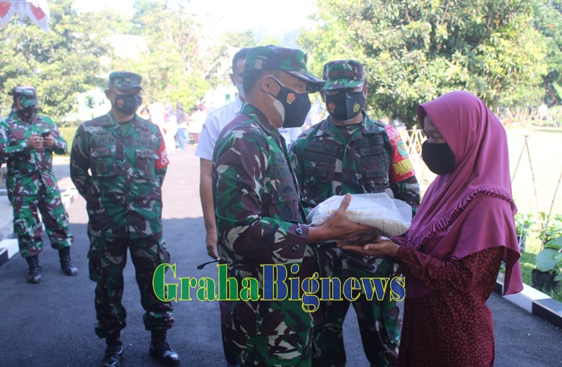 Kodim 0610/Sumedang Serahkan Beras Dari Staf Kepresidenan Bagi Warga Terdampak PPKM