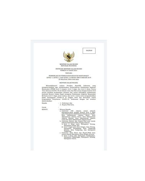 Hal ini tercantum dalam Instruk Menteri Dalam Negeri (Inmendagri) Nomor 35 Tahun 2021 tentang PPKM Level 4, 3, dan 2 Covid-19 di Wilayah Jawa dan Bali. Kabupaten Garut sendiri berada di Level 2 pada masa PPKM bersama 3 kabupaten lain di Jawa Barat yakni Kabupaten Tasikmalaya, Kabupaten Majalengka, dan Kabupaten Subang.