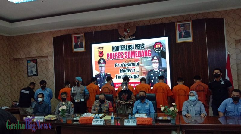 Sumedang – Satuan Reserse Krminal Polres Sumedang berhasil menciduk tujuh orang tersangka Anggota Geng Motor pelaku pengeroyokan hingga korban tak berdaya (23/08), terjadi di dua tempat berbeda, yakni gerbang keluar Asia Plaza dan Jalan Angkrek, Kelurahan Situ, Kecamatan Sumedang Utara.