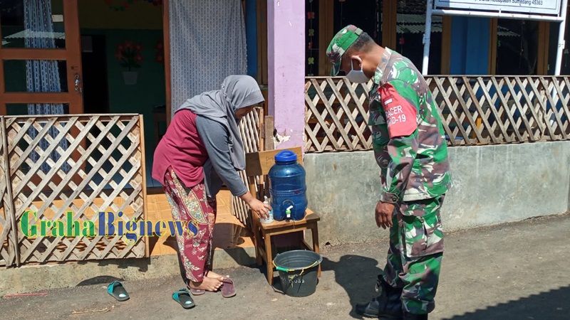 Sumedang – Kodim 0610/Sumedang instruksikan Babinsa jajaran Koramil setiap wilayah binaannya agar melaksanakan giat monitoring kesiapan PKM terbatas dalam rangka penerapan protokol kesehatan di setiap sekolah yang tengah melaksanakan belajar secara tatap muka.