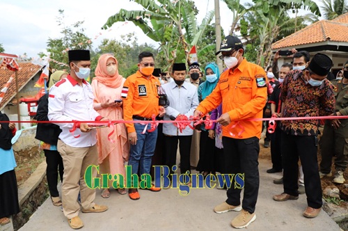 Wakil Bupati Garut, dr. Helmi Budiman, meresmikan secara langsung jalan lingkungan Kampung Cihanja, Desa Caringin, Kecamatan Karangtengah, Kabupaten Garut, Sabtu (11/9/2021). (Yogi Budiman/Diskominfo Garut-grahabignews.com)