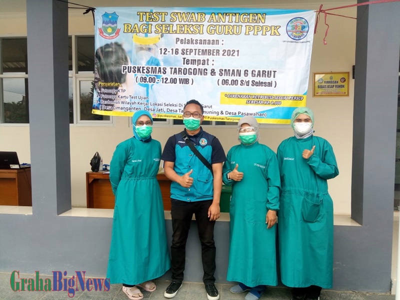 Garut – Pelaksanan test swab antigen sebagai syarat seleksi bagi calon guru Pegawai Pemerintah dengan Perjanjian Kerja (PPPK) dilaksanakan 13-16 September 2021 di sejumlah tempat pelaksanaan seleksi guru PPPK di Kabupaten Garut dengan di fasilitasi Puskesmas di masing-masing wilayah pelaksanaan seleksi.