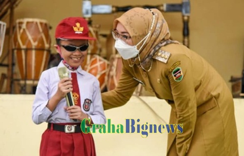 Bupati bersama rombongan, disambut dengan suara merdu salah seorang siswi SLBN berseragam merah putih dengan kaca mata hitam mempermanis penampilannya, menyanyikan lagu berjudul Bunda dari Melly Goeslaw mengetuk hati Bupati yang turun dari tempat duduknya dan langsung menghampiri siswi tersebut untuk komunikasi.