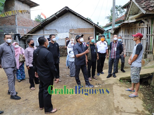 Garut – Wakil Bupati Garut, dr. Helmi Budiman, mendatangi penerima bantuan untuk perbaikan Rumah Tidak Layak Huni (Rutilahu) yang berlokasi di Kampung Cibening Lebak, Kelurahan Cimuncang, Kecamatan Garut Kota, Kabupaten Garut, Kamis (23/9/2021).