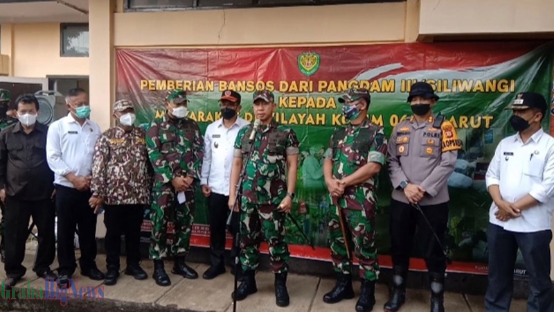 Mayjen Agus Subianto di dampingi wakil bupati Garut Helmi Budiman dan Kapolres Garut AKBP Whirdanto hadicaksono mengunjungi lokasi bencana Banjir Bandang sekaligus ,Pemberian bansos dari Pangdam III/siliwangi kepada masyarakat di wilayah kodim 0611/Grt pada Rabu 01 Desember 2021.