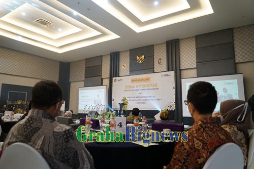 Pelaksanaan Acara Pencanangan Zona Integritas Menuju Wilayah Bebas dari Korupsi dan Apresiasi Kepada Wajib Pajak KPP Pratama Garut Tahun 2021, di Ballroom Hotel Harmoni, Kecamatan Tarogong Kaler, Kabupaten Garut, Jum'at (21/01/2022). (Foto : M. Azi Zulhakim/ Nindi Nurdiyanti/ Deni Seftian/ Diskominfo Garut-grahabignews.com).
