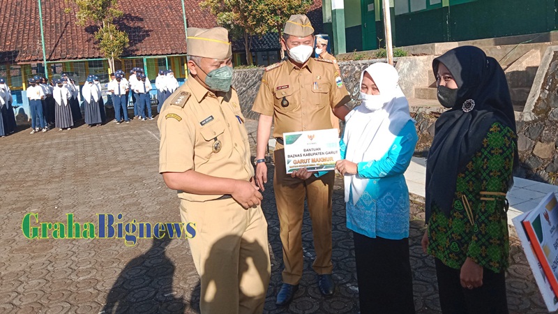 Selain membacakan sambutan Bupati Garut pada apel gabungan ASN dan Kepala Desa di Kecamatan Mekarmukti Kab. Garut, Kepala Dinas Pendidikan Kab. Garut Ade Manadin, S.Pd, M.Pd juga menyerahkan Bantuan dari Baznas Garut berupa Kursi Roda, Alat Bantu Pendengaran dan Stimulan Modal Usaha Guru Honorer.