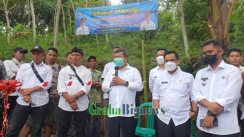 Pelaksanaan peresmian jalan poros penghubung Kecamatan Pakenjeng dan Kecamatan Cikelet, yang berlokasi di Desa Neglasari, Kecamatan Pakenjeng, Kabupaten Garut, Rabu (9/2/2022). (Foto : Deni Seftiana/Diskominfo Garut-grahabignews.com).