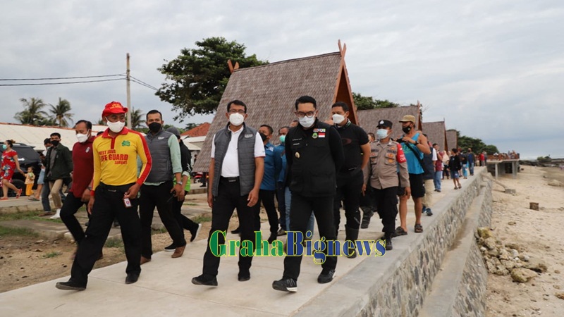 Garut – Gubernur Jawa Barat Ridwan Kamil meresmikan penataan obyek wisata Pantai Sayang Heulang di Desa Mancagahar, Kecamatan Pameungpeuk, Kabupaten Garut, Minggu (20/2/2022).