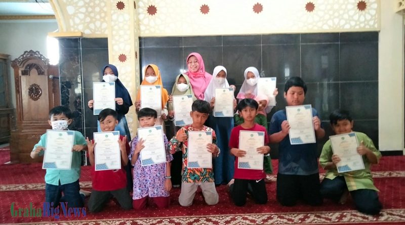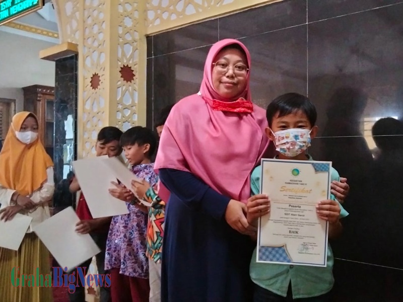Kepala Sekolah SAGA, Maharani Purnamasari, SE,.S.Pd Memberikan Sertifikat Kelulusan Pesantren Ramadhan, Rabu (20/04). (Foto: Rudi Herdiana – grahabignews,com)