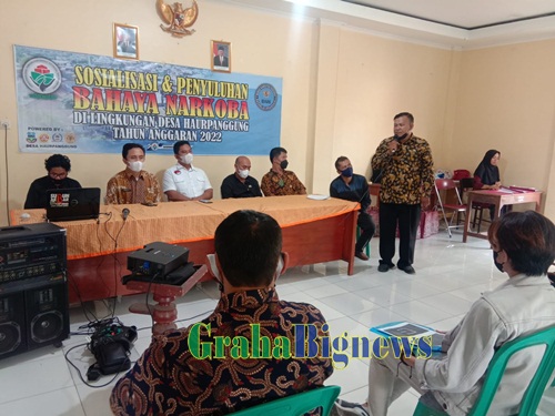Garut – Sosialisasi dan Penyuluhan Bahaya Narkoba Di Desa Haurpanggung Kecamatan Tarogong Kidul Kabupaten Garut Tahun Anggaran 2022, Jum’at (29/04/2022) di Aula Desa Haurpanggung pantauan GrahaBigNews berlangsung dengan aman, lancar dengan antusas dari hadirin yang hadir pada cara tersebut sangat bagus.