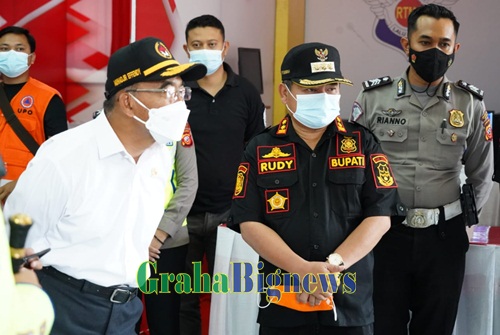 Garut – Bupati Garut, Rudy Gunawan menerima kunjungan kerja Menteri Kordinator Bidang Pembangunan Manusia dan Kebudayaan (Menko PMK) Republik Indonesia (RI), Muhadjir Effendy, dan Kepala Badan Nasional Penanggulangan Bencana (BNPB) RI, Mayjen TNI Suharyanto. Kunjungan tersebut dalam rangka pengecekan kesiapan jalur mudik di Garut Trade Center (GTC) Limbangan, Kecamatan Limbangan, Kabupaten Garut, Jum’at (29/4/2022).