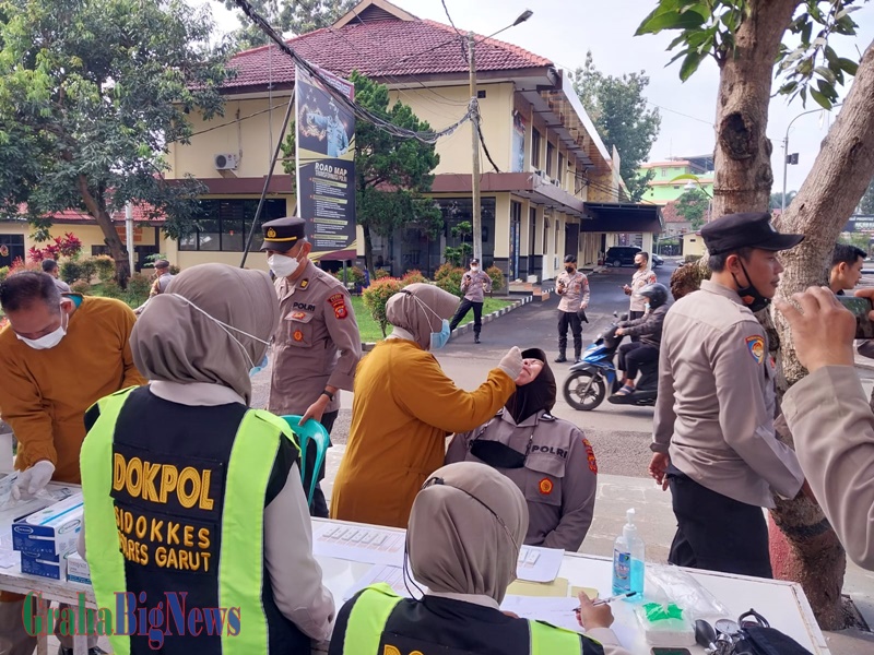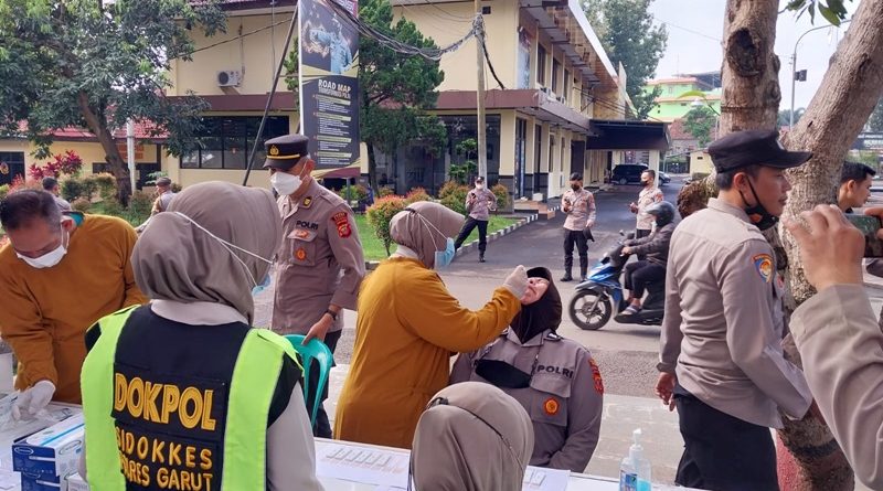 Garut – Polres Garut Polda Jabar dalam mengantisipasi dan mencegah lonjakan kasus positif covid-19 sebagai dampak dari libur panjang dan mobilitas penduduk masa mudik yang tinggi, khususnya anggota polri telah melaksanakan pemeriksaan swab antigen, Kamis (12/05).