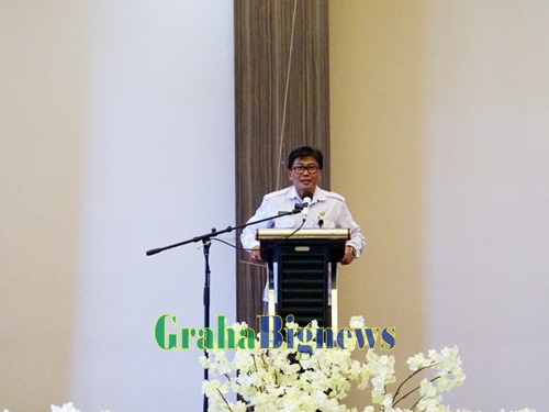 Kadisperindag dan ESDM dalam acara Lunch Meeting Sosialisasi Pengiriman Barang Dengan Kereta Api, yang digelar di Ballroom Favehotel, Jalan Cimanuk, Kecamatan Tarogong Kidul, Kabupaten Garut, Rabu (25/5/2022). (Foto : Ilham Kautsar Prawira/Febri Noptageri/Diskominfo Garut-grahabignews.com).