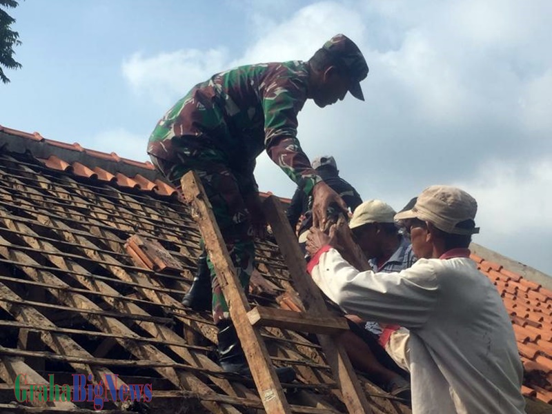 Sumedang – Senin pagi yang cerah, Serka Iwan Permana Babinsa Kutamandiri beserta Warga Dusun Panday Kutamandiri Kec. Tanjungsari Kab. Sumedang, bergegas mendatangi Rumah Ma Ipah yang pagi ini sesuai perintah Danramilnya segera di eksekusi untuk diperbaiki.