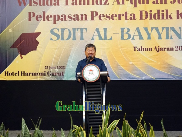 Hal itu diungkapkan Bupati Garut, H. Rudy Gunawan, S.H.,M.H., M.P. dihadapan tamu undangan pada acara Wisuda Tahfidz Alquran Juz 29&30, dan Pelepasan Peserta Didik Kelas 6 SDIT Al-Bayyinah Angkatan ke IX Tahun Ajaran 2021-2022 dilaksanakan di Hotel Harmoni kawasan Cipanas Kecamatan Tarogong Kabupaten Garut, Selasa (20/06/2022) yang dihadiri oleh Kabid PAUD&Dikmas, Kasi Dikmas Dinas Pendidikan, Ketua Yayasan Al-Bayyinah, para orang tua, para Guru, dan peserta didik Al-Bayyinah.