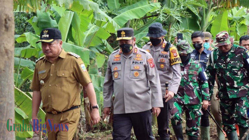 Garut – Kapolda Jabar Irjen Pol Suntana dan Ibu Ketua Bhayangkari Daerah Jawa Barat meninjau sekaligus Bhakti Sosial Ke Lokasi Bencana Banjir Di Kabupaten Garut, yakni di kampung Dayeuhhandap Kelurahan Kota Kulon, Kecamatan Garut Kota dan Kampung Cimacan, Desa Haurpanggung, Kecamatan Tarogong Kidul, Kabupaten Garut, Senin (18/07/2022).