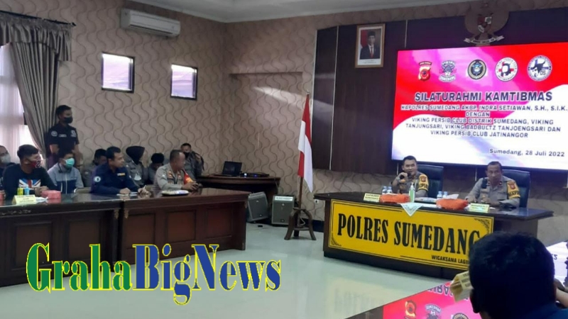 Sumedang – Pada hari Kamis (28/07/2022) bertempat di Aula Tribrata Polres Sumedang telah dilaksanakan kegiatan silaturahmi kamtibmas Kapolres Sumedang AKBP. Indra Setiawan, S.H., S.I.K. dengan Bobotoh yang tergabung dalam Viking Distrik Sumedang.
