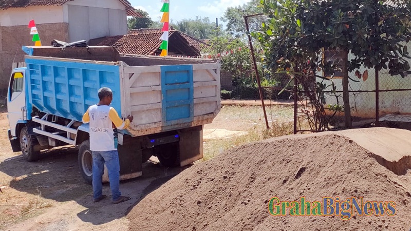 Simbolis bantuan tersebut yaitu 15 sak semen, pasir 1 truck batu 1 truck, besi 16 lente dan uang tunai yang diserahkan oleh Team Jum’at Berkah Polres Garut.
