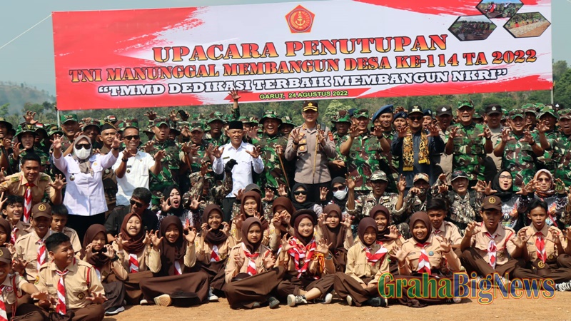 Garut – Kapolres Garut AKBP Wirdhanto Hadicaksono menghadiri acara penutupan TNI Manunggal Membangun Desa (TMMD) Kodim 0611/Garut Tahun 2022 yang bertempat di Lapangan Kampung Majah Beureum, Desa Ciwangi, Kecamatan Blubur Limbangan, Kabupaten Garut, Rabu (24/8/2022).