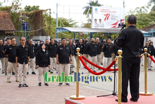 Garut – Bupati Garut, Rudy Gunawan memberikan arahan dalam apel terbatas bersama jajaran Inspektorat Kabupaten Garut, di Lapangan Sekretariat Daerah (Setda), Jalan Pembangunan, Kecamatan Tarogong Kidul, Kabupaten Garut, Kamis (1/9/2022).