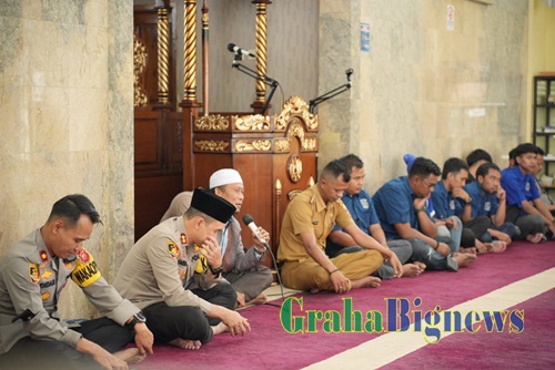 Kegiatan ini sendiri dimulai dengan Shalat Dzuhur berjamaah, lalu dilanjutkan dengan Dzikir dan Do’a bersama serta di tutup dengan Shalat Ghaib berjamaah dengan Imam Da’i Kamtibmas Ust. Chumaedi.