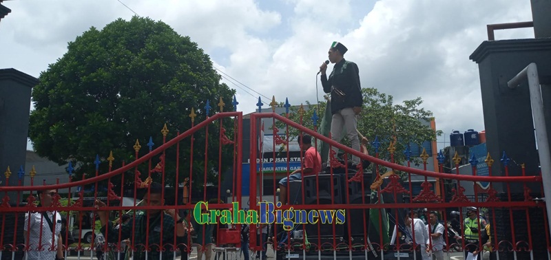 Barulah pada pukul 11:59 WIB, para pendemo dari HMI tiba di halaman pagar kantor Dinas Pendidikan Kabupaten Garut dan mereka selain melakukan orasi juga memancangkan tuisan “Reformasi Birokrasi Disdik Kab. Garut”.