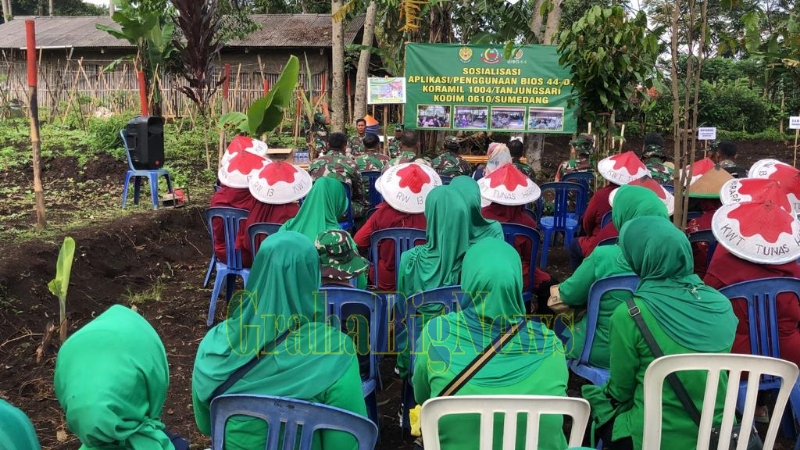 Sumedang – Kelompok Wanita Tani Tunas Harapan dan Masyarakat Desa Margajaya Kec. Tanjungsari Sumedang mendapat penjelasan tentang penggunaan BIOS 44 DC dari Babinsa dan Anggota Persit Kartika Chandra Kirana Ranting 5 Tanjungsari, Rabu (23/11).