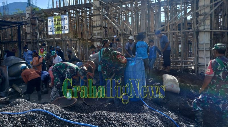 Danramil 1002/Cimalaka Bersana Warga Kerja Bakti Pengecoran Mesjid Al Barokah, Sabtu (04/12). (Foto: Istimewa – grahabignews.com)
