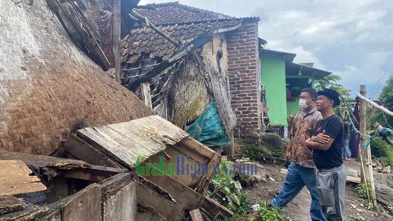 Garut – Anggota DPRD Garut dari Fraksi PDI Perjuangan, Yudha Puja Turnawan bersama Kades Mekarsari, Deni menengok kondisi rumah rubuh milik Asep Nurdin, warga Kampung Cinangsi RT 02 RW 03 Desa Mekarsari Kecamatan Karangpawitan, Jum’at (09/12).