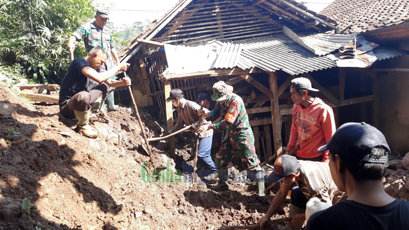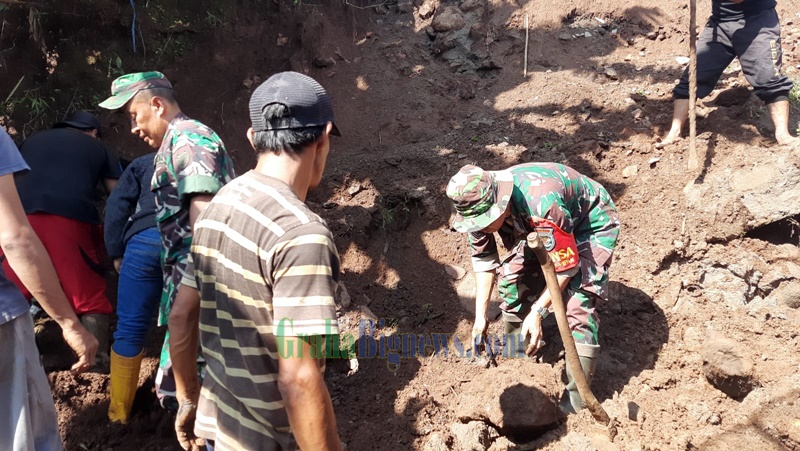 Babinsa Gotong Royong Pasca Longsor di Cimanggung, Sabtu (17/12). (Foto: Uu Suhana – grahabignews.com)