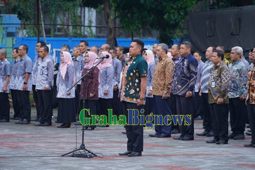 Pelaksanaan Apel Gabungan Terbatas yang dilaksanakan di Lapangan Sekretariat Daerah (Setda) Garut, Jalan Pembangunan, Kecamatan Tarogong Kidul, Kabupaten Garut, Kamis (19/1/2023). (Foto : M. Azi Zulhakim & Deni Septyan/Diskominfo Garut-grahabignews.com).