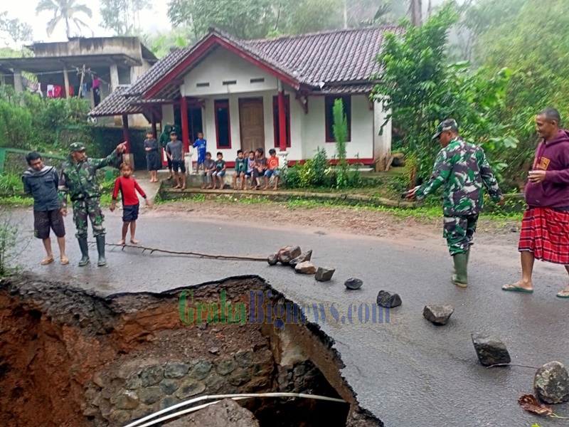 grahabignews.com, Garut – Sebuah jalan jembatan di Kampung Cikalong, Desa Karangagung, Kecamatan Singajaya, Kabupaten Garut, dilaporkan mengalami ambles pada Minggu sore (29/01/2023), pukul 15.30 WIB.