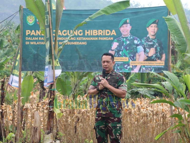 Hal tersebut dikatakan Dandim 0610/Smd Letkol Inf Hendrix Fahlevi Rangkuti dalam sambutannya pada acara panen jagung hibrida di lahan demplot Kodim 0610/Sumedang, Rabu (8/2/2023).