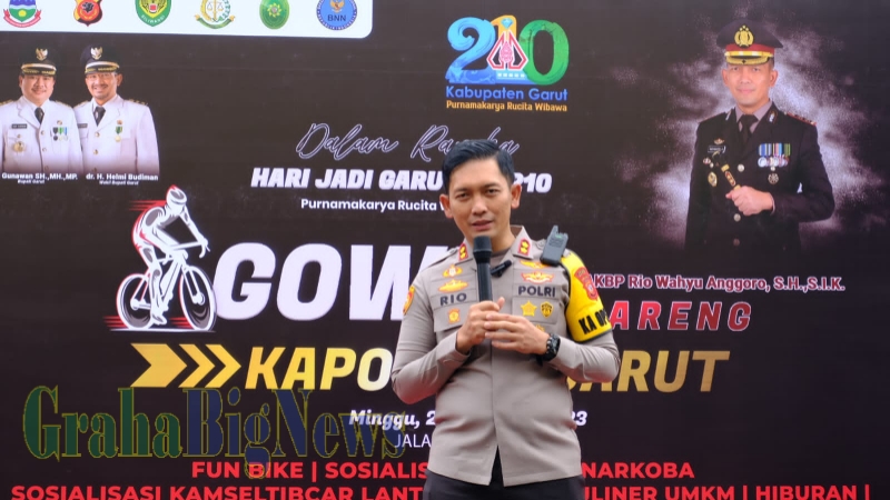 grahabignews.com, Garut – Dalam rangka memperingati Hari Jadi ke- 210 Kabupaten Garut (HJG), Kepolisian Resor (Polres) Garut menggelar persiapan kegiatan Gowes Bareng Kapolres Garut yang dilaksanakan di Polres Garut, Jalan Raya Suci, Kecamatan Karangpawitan, Kabupaten Garut, Rabu (8/2/2023). Acara ini turut dihadiri oleh Kepala Bidang Informasi dan Komunikasi Publik (IKP) Dinas Komunikasi dan Informatika (Diskominfo) Garut, Yeni Yunita.